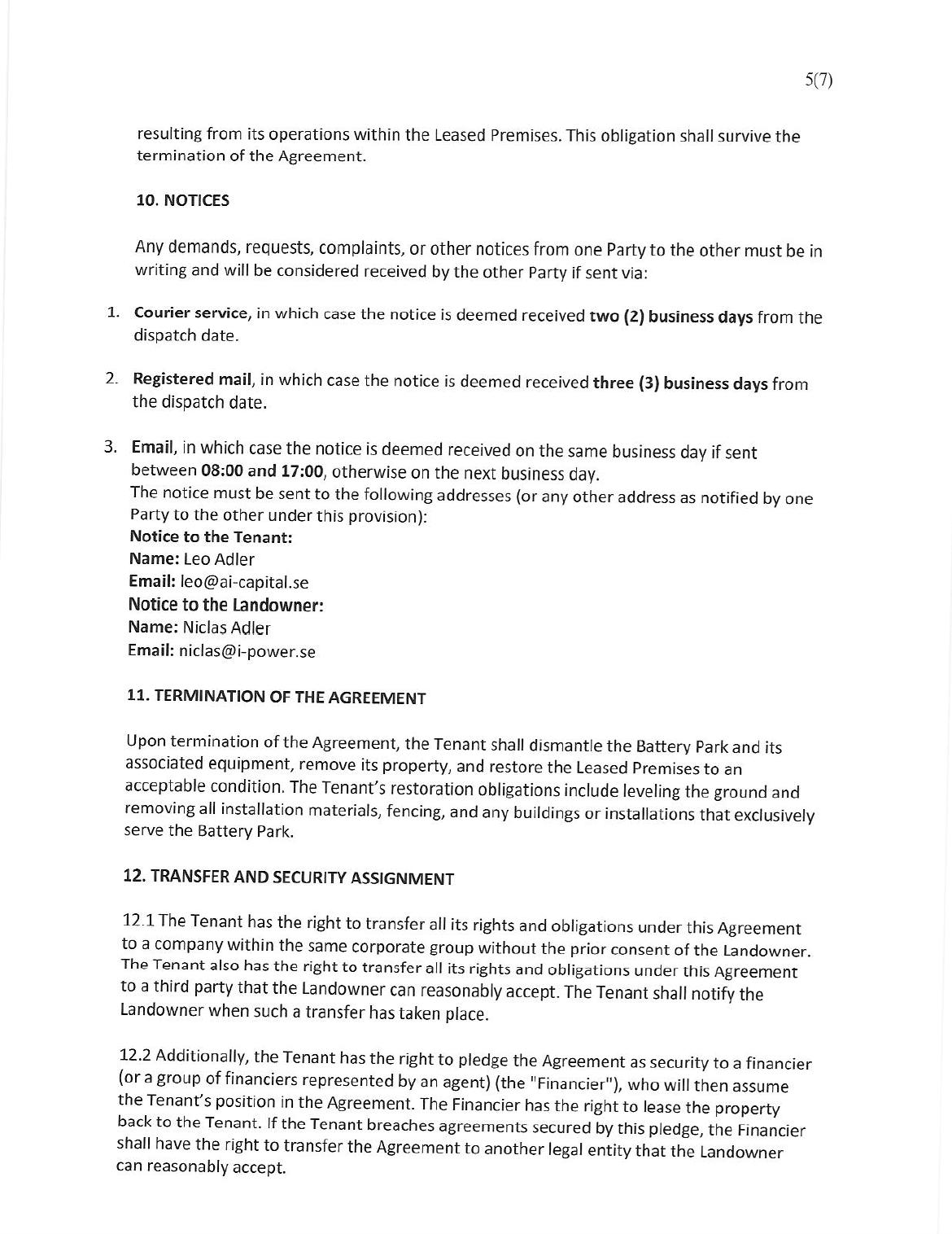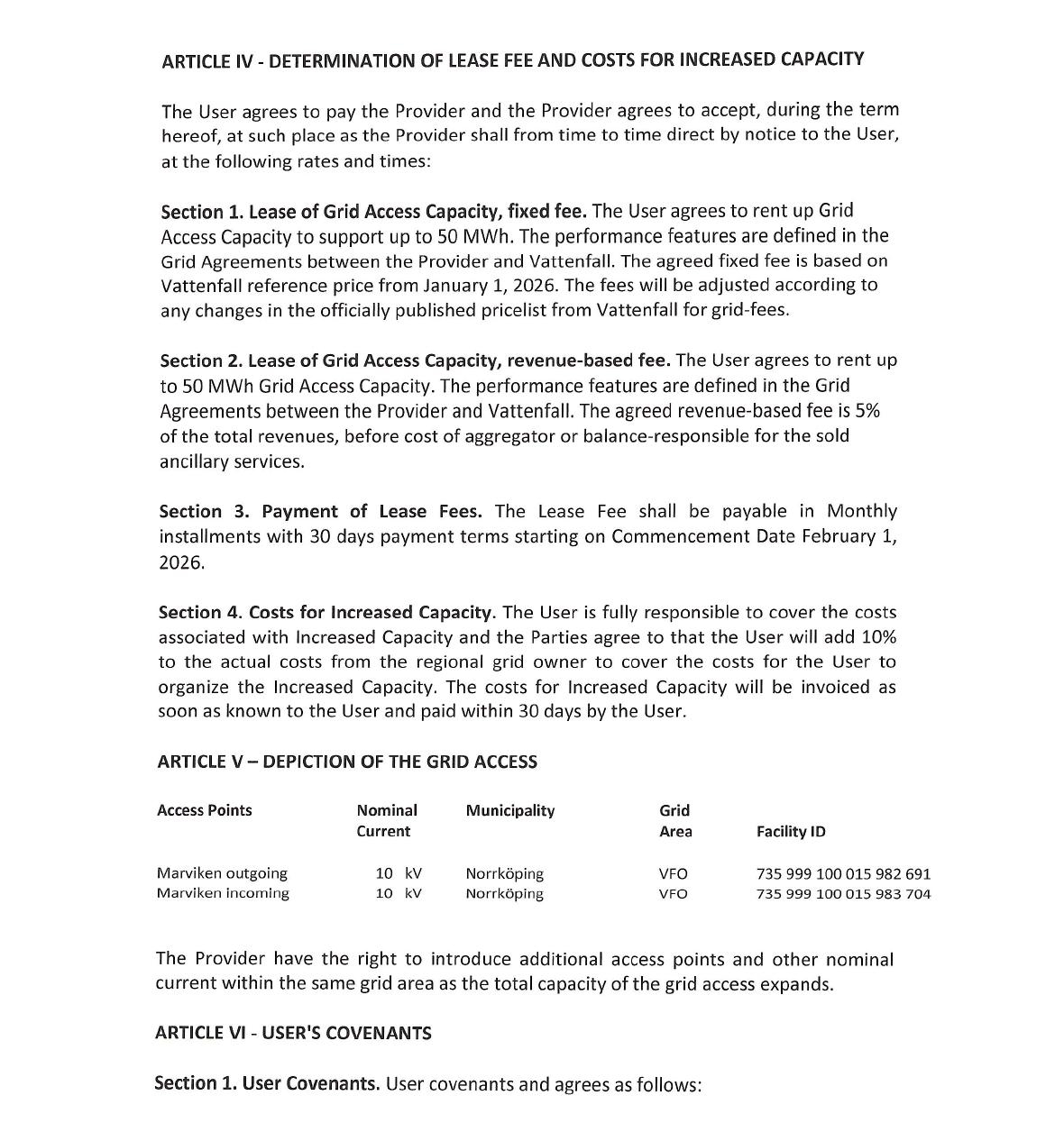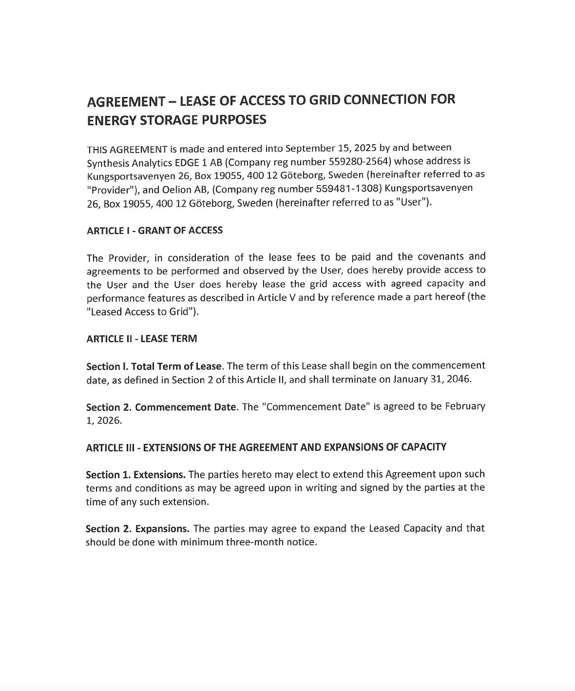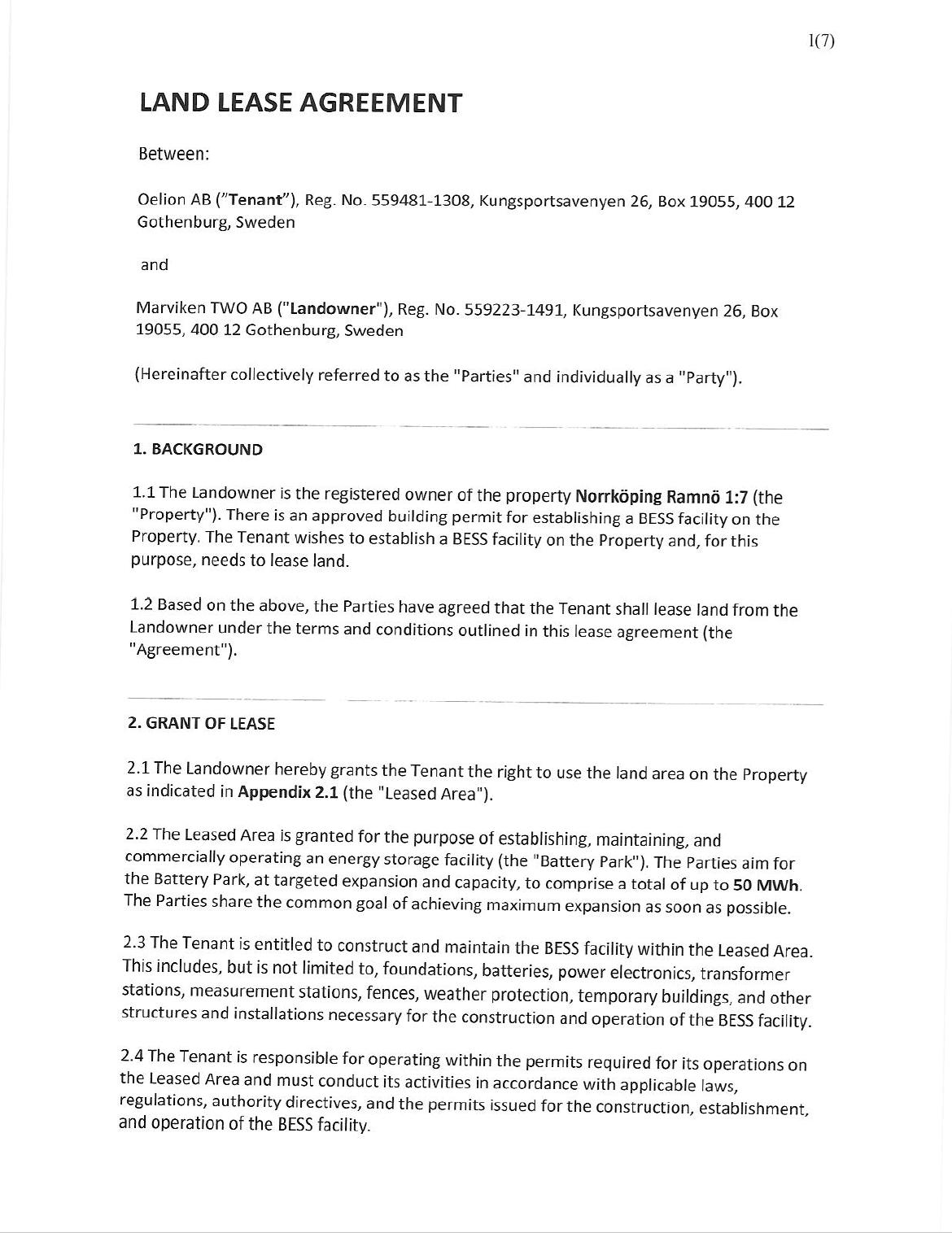 | Exhibit (E) | Oelion AB Lease Agreement And Grid Access (50MW) | |