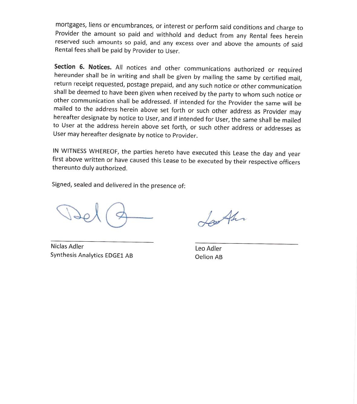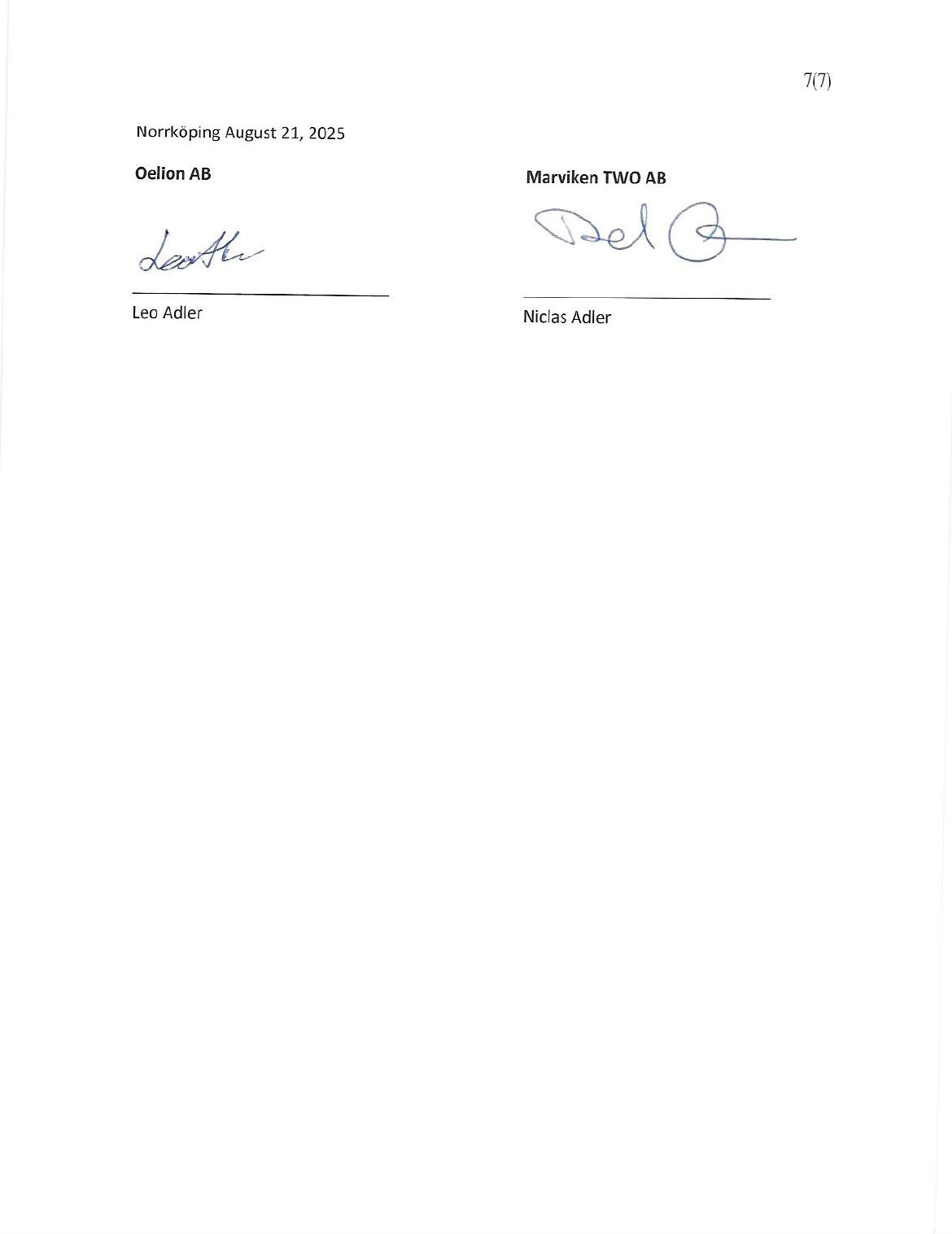 | (1) | Oelion AB, a company organized under the laws of Sweden, with its registered office at Kungsportsavenyen 26, Box 19055, 400 12 Göteborg |