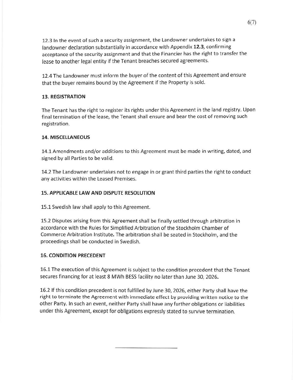 | 4. | Third Milestone - Transfer of 50MW Lease and Interconnection Agreements |